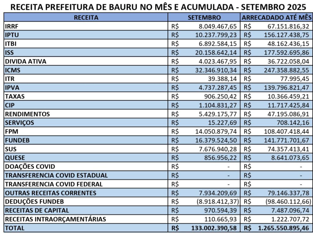 O Município de Bauru projeta aumento de repasse de ICMS de cerca de R$ 30 milhões em 2026, considerando … Continue lendo Bauru terá R$ 30 milhões a mais de receita de ICMS em 2026