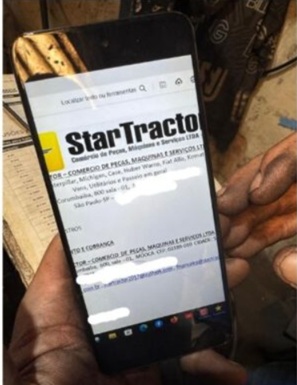 A pista inicial estava no print da imagem abaixo entregue pelo mecânico da Vila Engler que reclamava não ter recebido pelo serviço que prestou. Um dos proprietários, ele traz que a empresa Star Tractor, da Capital, ligou para pagar.
