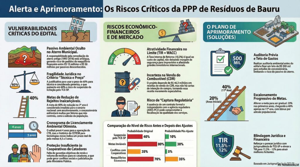 Também questionamos na audiência pública o governo sobre a possibilidade do edital não atrair grandes ‘players’ do mercado – pelo fato do investidor não ter acesso vinculado a tarifa de lixo. Diferente da concessão de iluminação. Neste contrato a garantia de recebimento vinculado da CIP – contribuição de iluminação pública – assegura o pagamento e, com isso, reduz custo de risco no contrato.