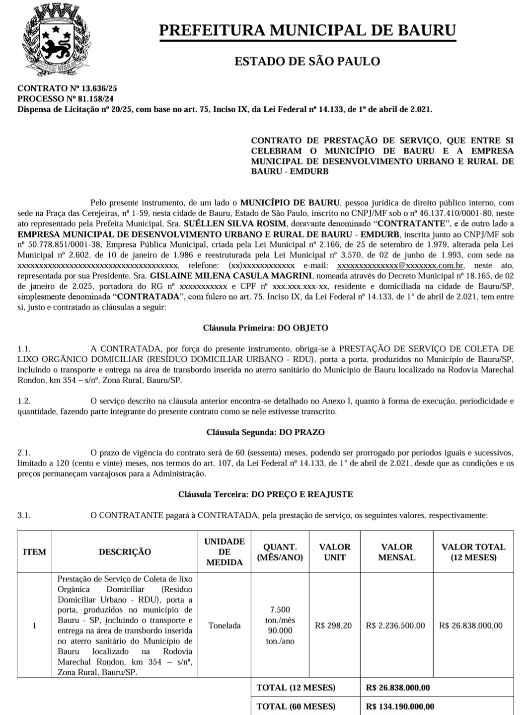 O governo Suéllen Rosim tenta manter a sete chaves o projeto de ampliação do programa de concessões que a prefeita colocou em curso desde o início deste seu segundo mandato. Tentava! Porque o CONTRAPONTO apura os passos do estudo contratado também junto a Fipe (a exemplo do esgoto e drenagem). O fato é que o Município inscreveu na Lei Orçamentária (LOA) para 2026 o valor específico de R$ 62,5 milhões como taxa de serviços do lixo domiciliar.