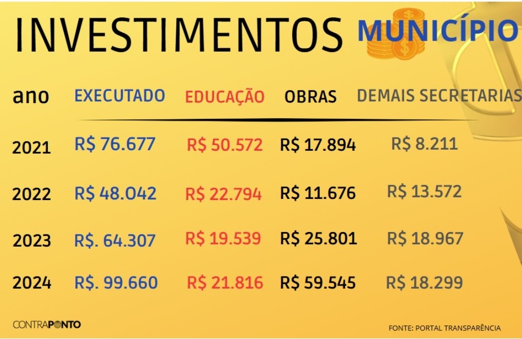. Demonstramos, em matéria específica disponível para busca no site que a Prefeitura enfrenta problemas para cumprir os 5% mínimos obrigatórios, da Constituição, de gastos registrados como investimentos.